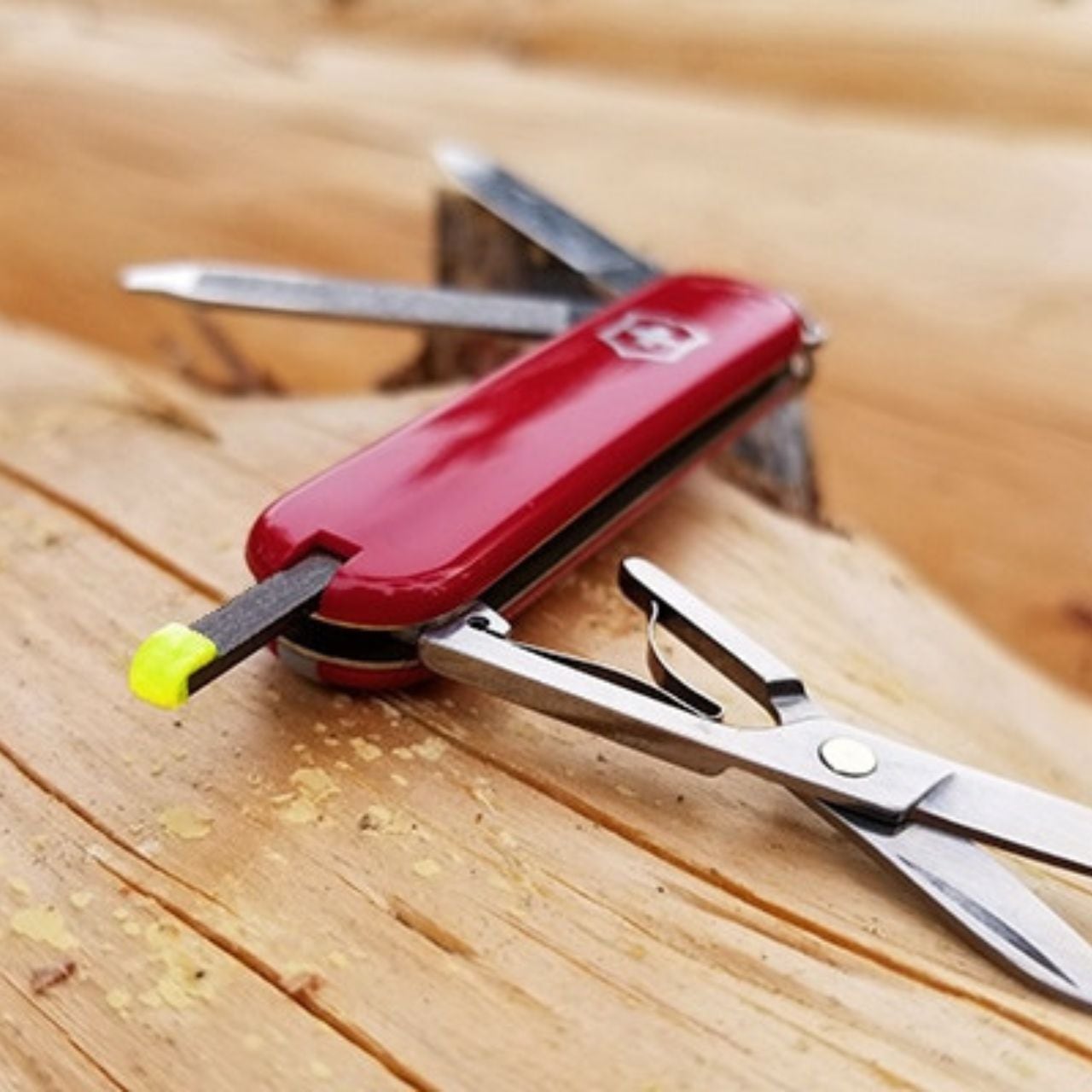 ビクトリノックスのクラシックなど、小型マルチツール。多くの場合爪楊枝スロットが備わっています。
