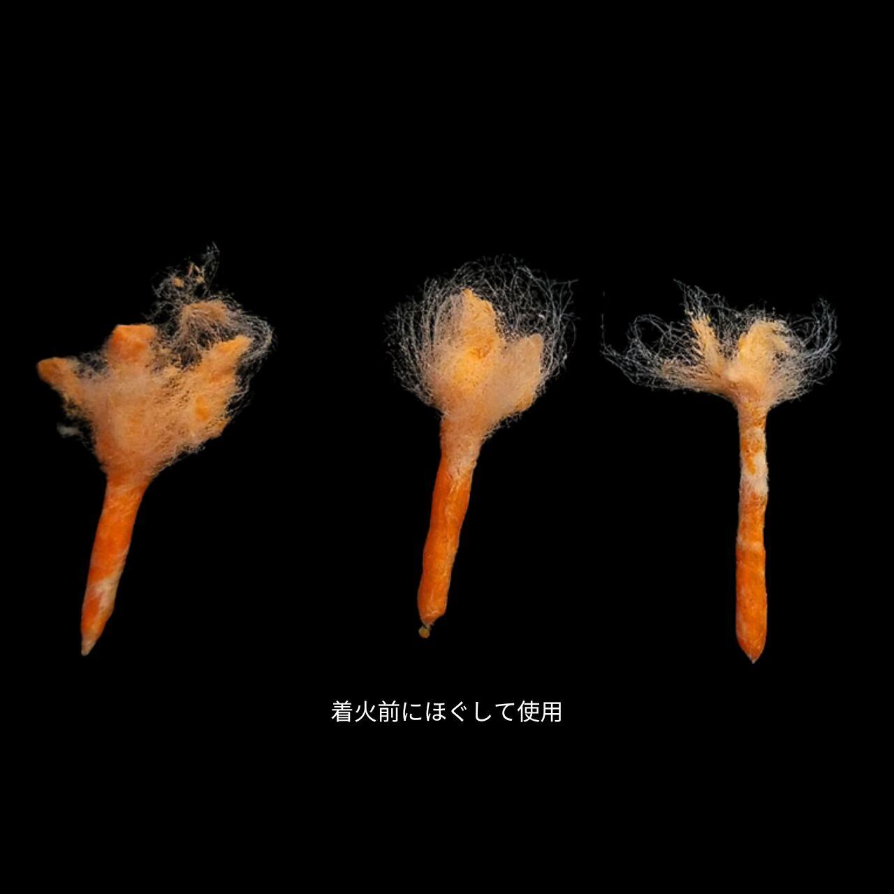 目立たないグレー色。防水性に加え防風性に優れ、風の強い状況でも着火しやすいのが特徴です。高温で速く燃えますが、風の影響で燃焼速度が変わりやすくなります。燃焼時間は約0.5~1.5分(目安)。