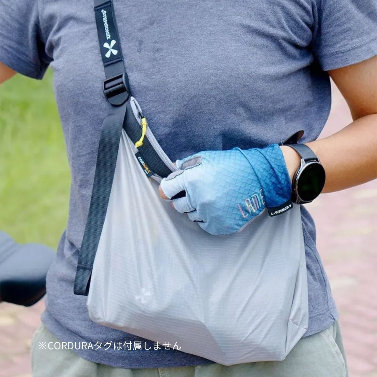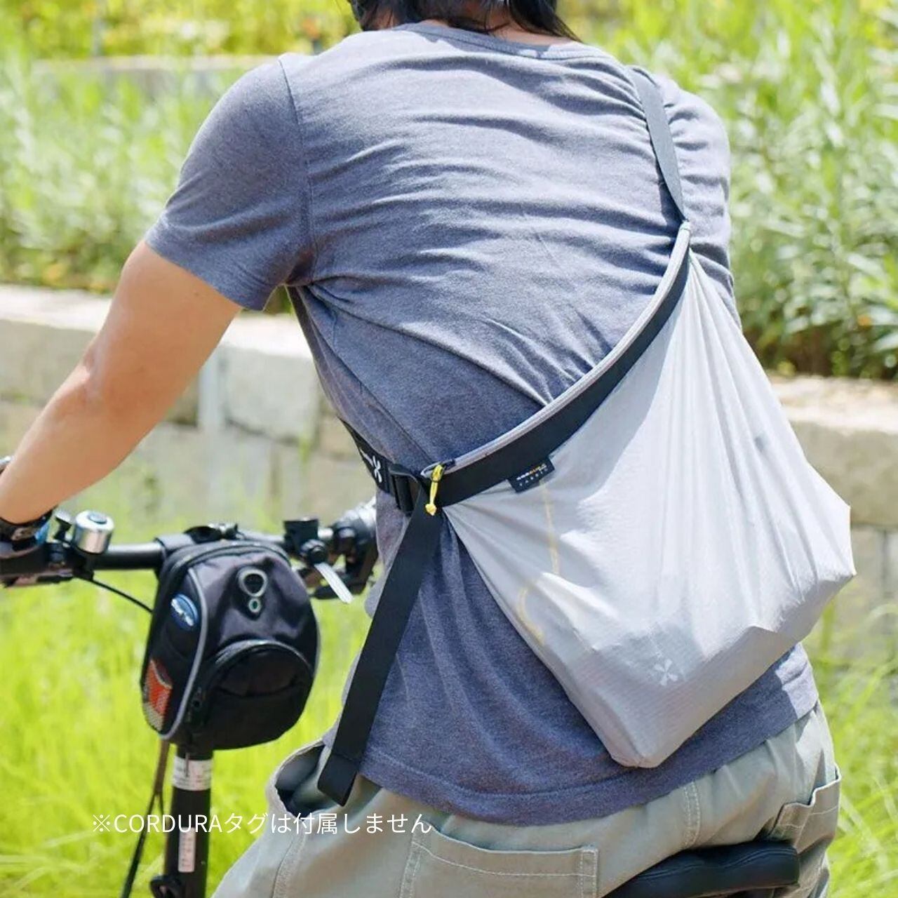 下山後の温泉セットを入れたり、帰りの買い出しで増えた荷物をまとめたり。 「エコバッグだと頼りないし、生活感が出るのがちょっと…」という方に最適な、タフでウルトラライトなショルダーバッグです。使わない時は掌サイズになるので、ザックの雨蓋や車のダッシュボードに常備しておくと、いざという時に活躍します。